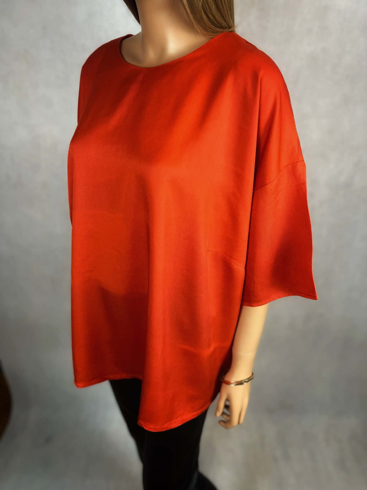 Napisz pierwszą opinię o „Czerwona bluzka oversize z szerokim rękawem”