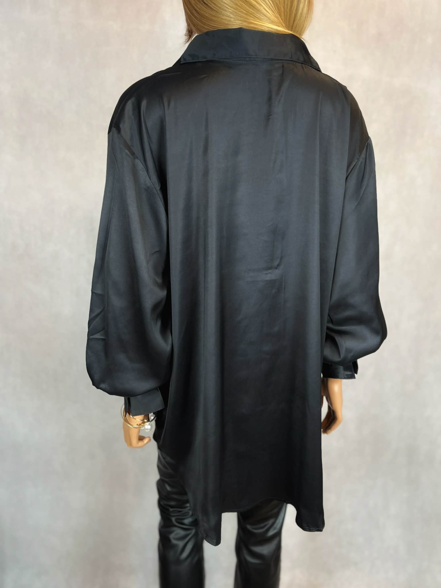 Koszula zapinana na guziki, z klasycznym kołnierzykiem i długim rękawem. Wydłużony fason pozwala nosić ją zarówno jako tunikę do legginsów, jak i w zestawieniu z dopasowanymi spodniami czy jeansami.