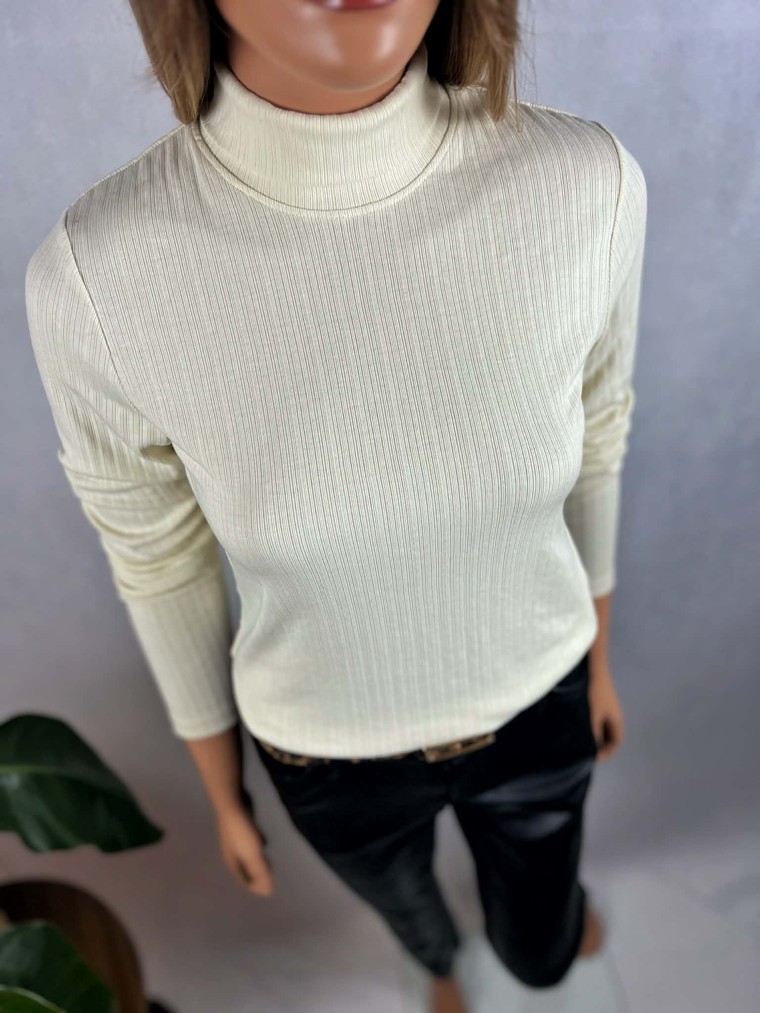 Napisz pierwszą opinię o „Kremowy golf prążkowany damski – dopasowany, elegancki basic”