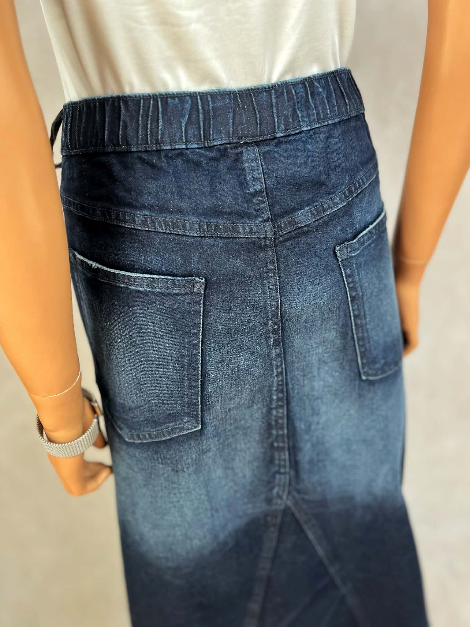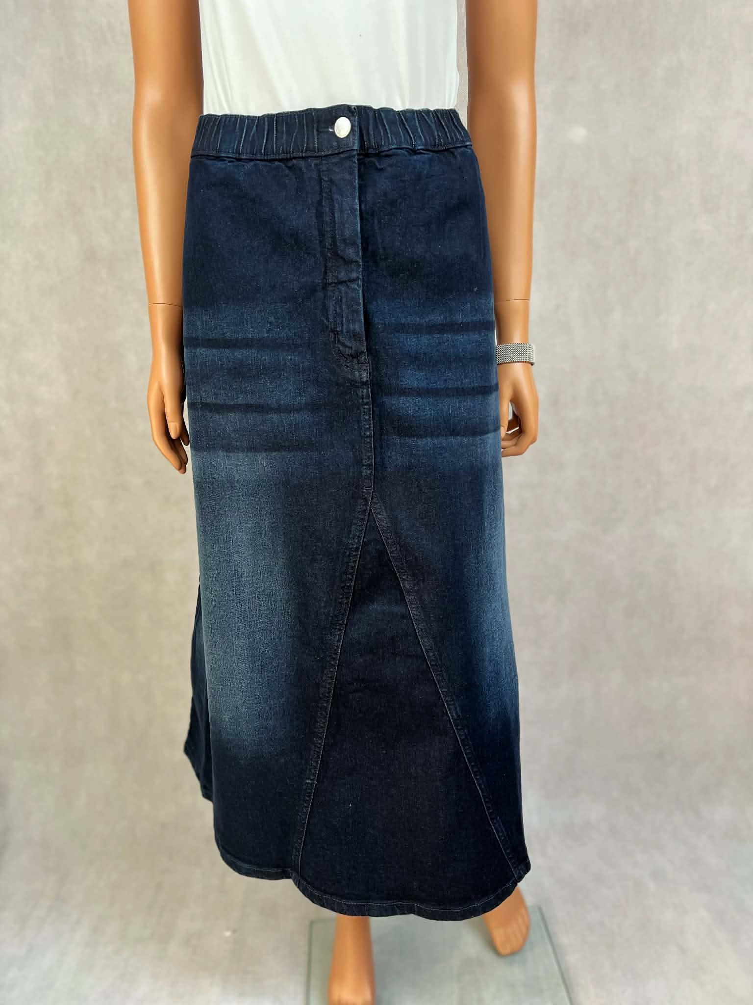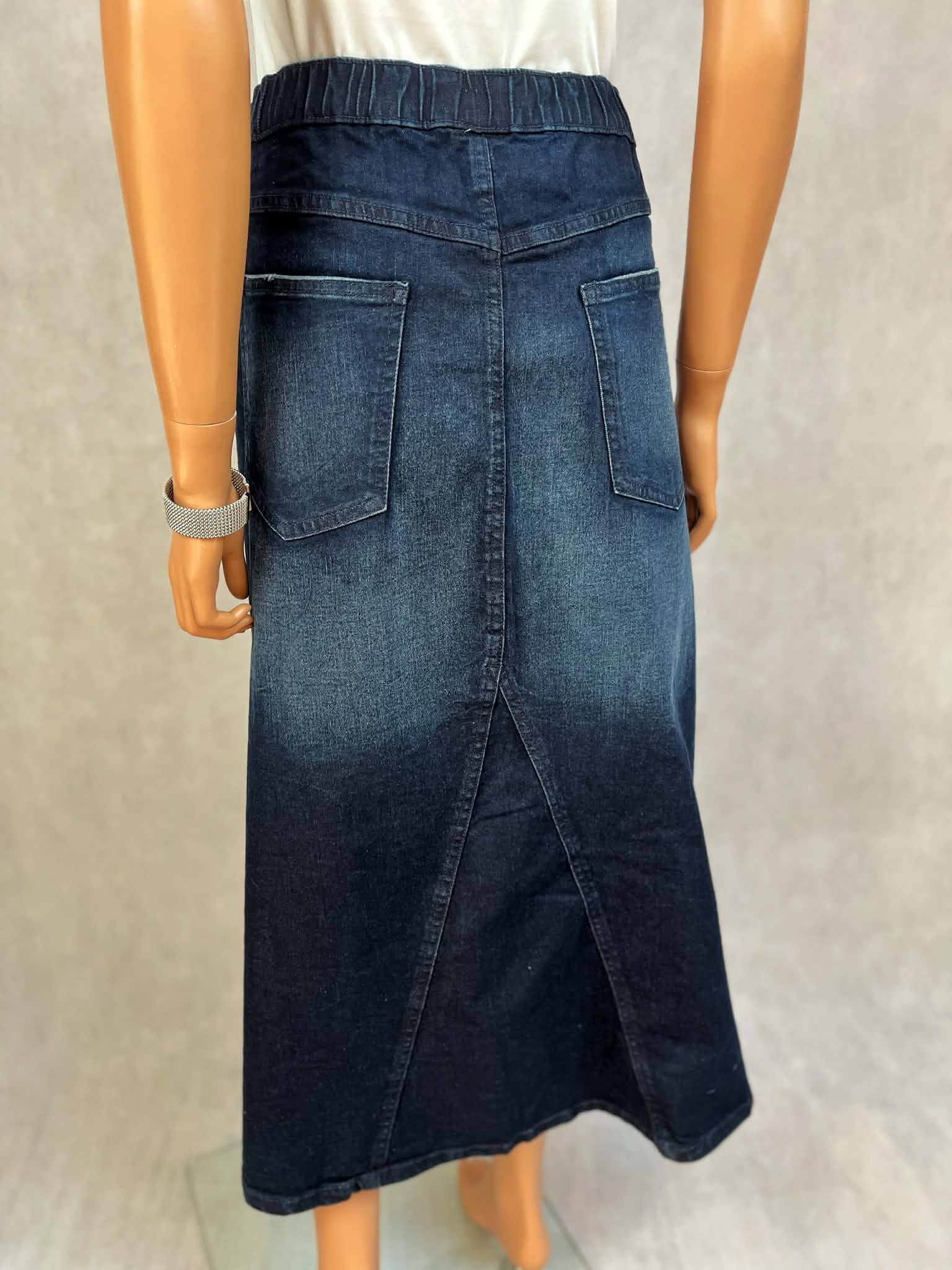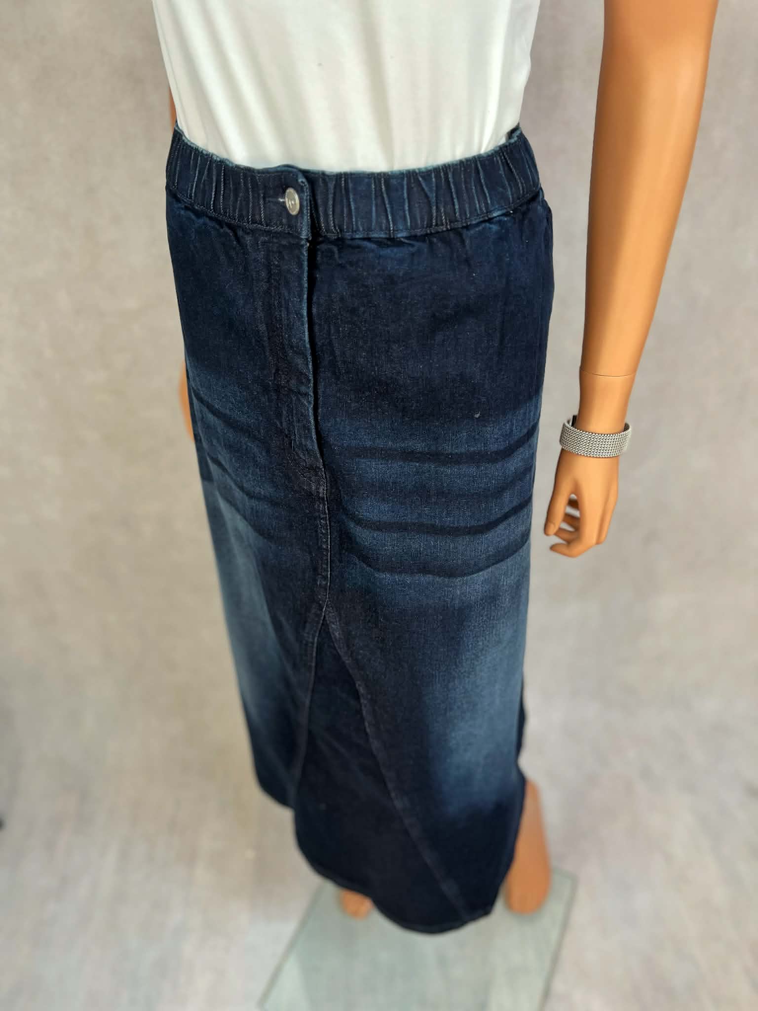 Spódnica jeansowa midi z elastycznym pasem i rozcięciem