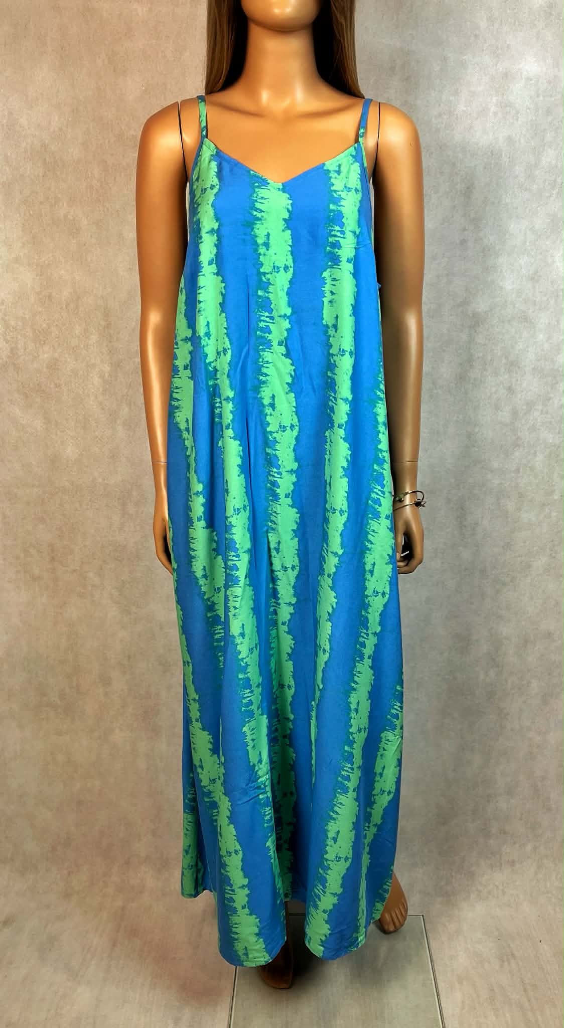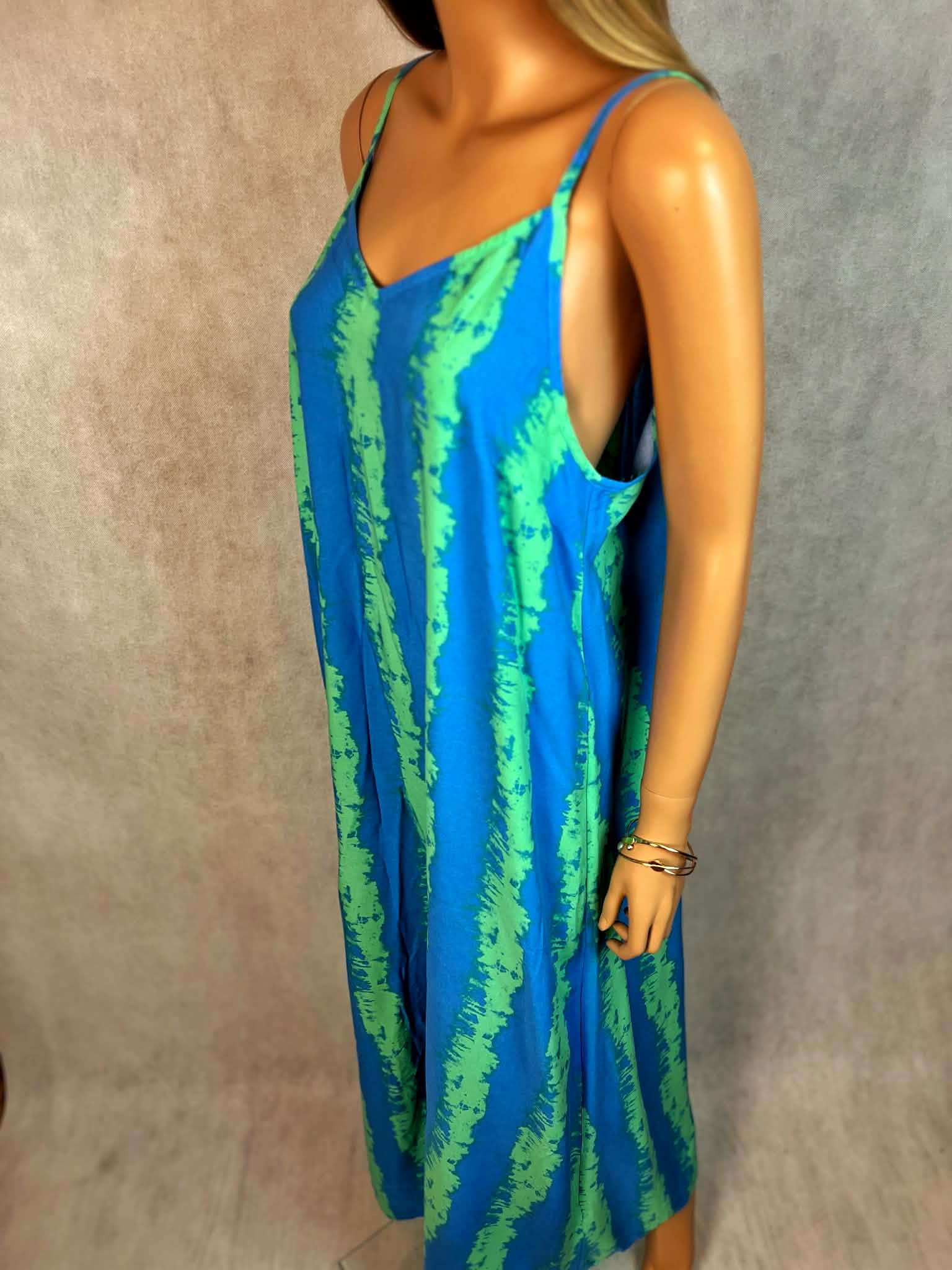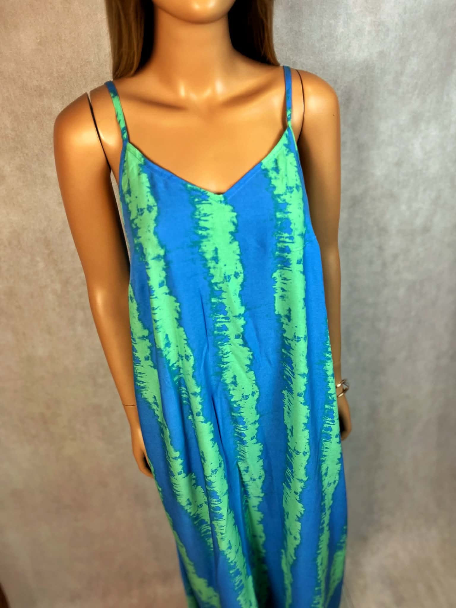 Sukienka maxi wiskoza niebiesko zielona na ramiączkach