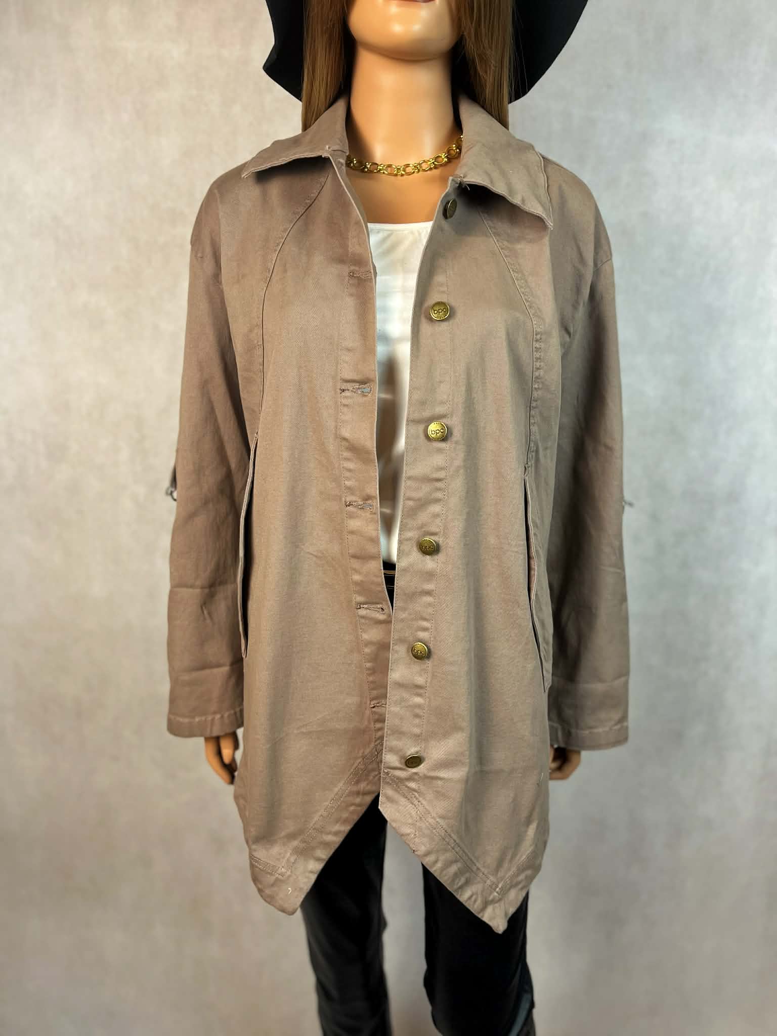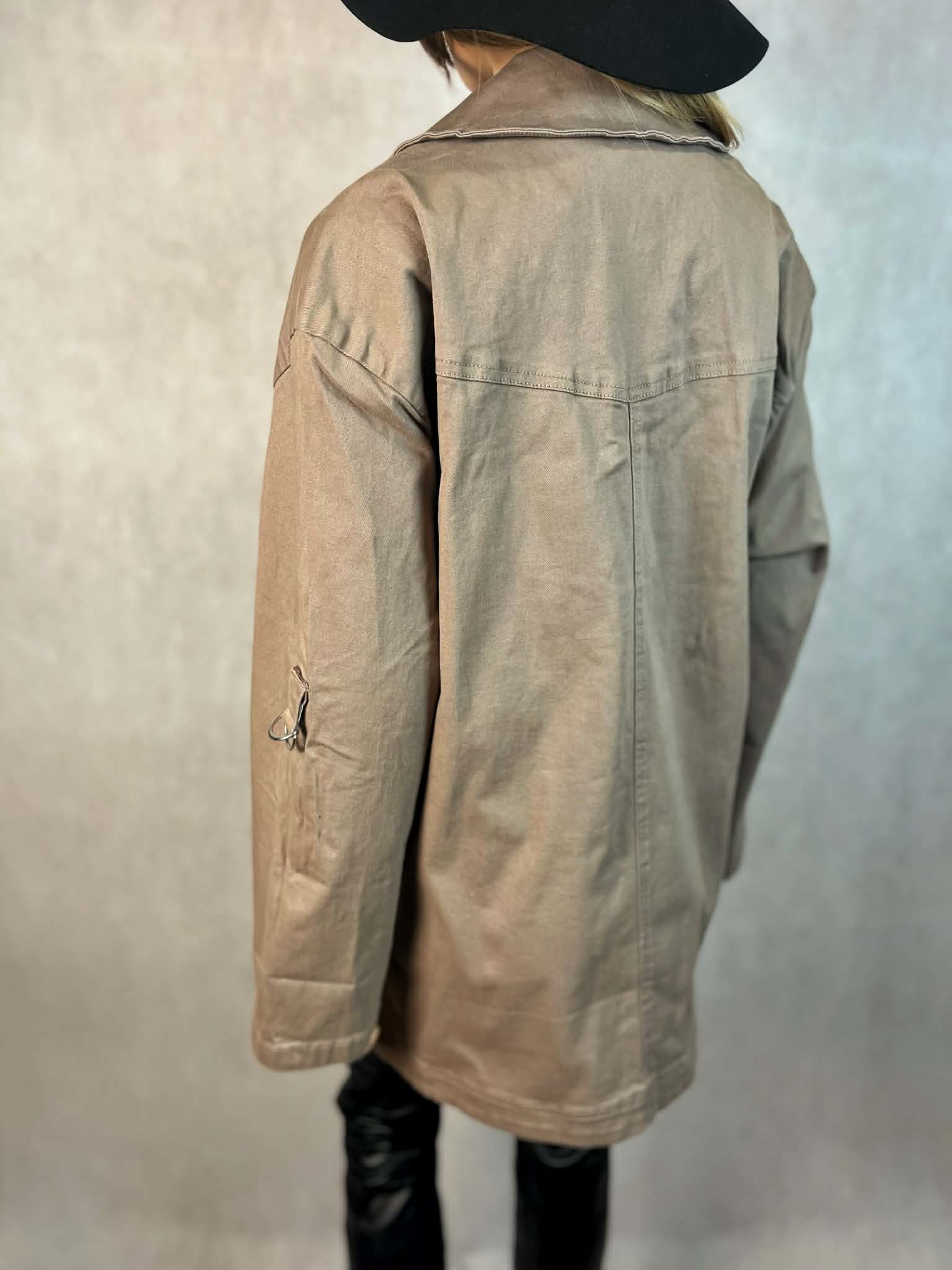 Zapinany na guziki, z praktycznymi kieszeniami po bokach. Minimalistyczna forma i klasyczny kołnierz sprawiają, że to ponadczasowy element garderoby, który łatwo dopasować zarówno do eleganckich stylizacji, jak i codziennych zestawów z jeansami czy spodniami materiałowymi.